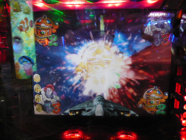 でしたよね。 当時のスペックは現在ハイスペック機の代名詞ともいわれる CR.花の慶次 ~雲のかなたに~ CR.北斗の拳 CR.GARO(ガロ) などよりも 辛い?スペックでしたよね。 だって大当たり確率が496.5分の1(約500分の1)という確率で 確変突入率が68%って当時ではそれが当たり前だったものですから・・・。 パチンコ業界の進歩はすごいものですね。 さて話は 大ヤマト2に戻りまして・・・。 ここで、リーチのおさらいをしましょう。 ノーマルリーチ・・・リーチの大半をしめるこのリーチ。知っている人も多いですが、 ワープ予告・白雪(びゃくせつ)予告・オキ予告・ガイラー予告・オズマ艦長予告 スペースゼロ5機予告・大ヤマト砲フラッシュ・ティム群が出た時にスーパーリーチに 発展しない場合(つまりノーマルリーチの場合) 実戦上大当たり確定です。 ←写真左上は白雪(びゃくせつ)予告です A(アー)銀河リーチ・・・図柄がA銀河をかけぬけるリーチ。このA銀河リーチにも オキ予告以上・ティム群がでた時に、このリーチに発展すると 実戦上大当たり確定です。 スペースゼロリーチ・・・スペースゼロが大ヤマトから発進し、図柄を撃破するリーチ。 スペースゼロがクルっと1回転すると、スペースゼロWARNINGリーチへ。 スペースゼロWARNINGリーチの場合はリーチ図柄1個手前で必ず 止まり、図柄を打ち抜けば大当たり。 もし、図柄が2ラインの場合はWARNINGリーチには発展しませんが、 期待度大幅アップ!! ワープリーチ・・・大ヤマトがワープ空間を移動するリーチ。 基本2ライン限定のリーチですが、 これが1ラインになると・・・ 期待度大幅アップ!! 大ヤマト砲リーチ(横)・・・大ヤマト砲発射!!の声と同時に 艦首から大ヤマト砲が発射されるリーチ。ド迫力のリーチ。必見です!! 大ヤマト砲リーチ(正面)・・・・・・・・・・・オズマ艦長が大ヤマト砲発射用意!! の号令とともに、大ヤマトの クルーがカットイン。 本機最強の激アツリーチ 大ヤマト砲リーチ(正面)への発展方法は様々で、 1.ノーマルリーチから発展